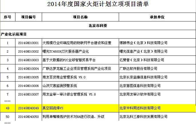 此項工作已于近日圓滿完成,同志科技攜新研發(fā)成果——真空回流焊V3進行報名參加評選,并成功取得了2014年度國家火炬計劃立項項目。