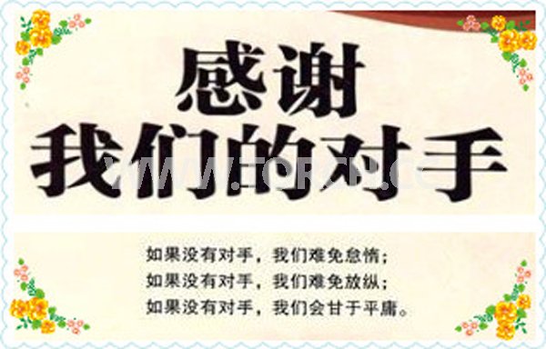 感恩對手,因為挑戰,讓他們努力增強自己的實力,因為競爭,使他們戰斗力十足,尋求不斷的創新,趕超對手的同時,我們也在超越自己。感謝生命中那些對手,讓我們在競爭中,不斷達到新的自己!
